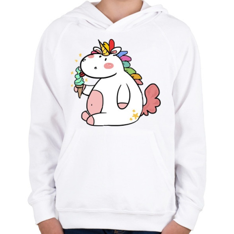 1 kép PRINTFASHION Unikornis fagyival - Gyerek kapucnis pulóver - Fehér
