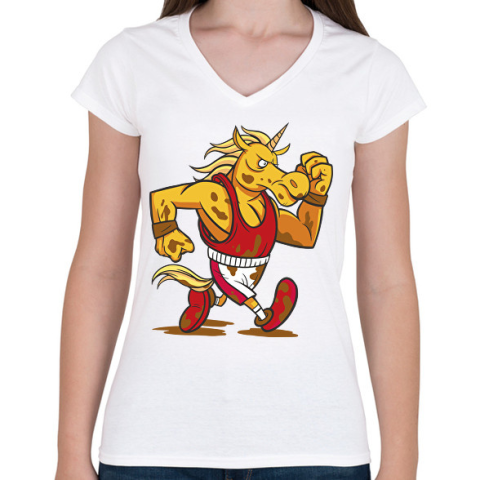 1 kép PRINTFASHION Unikornis futó - Női V-nyakú póló - Fehér