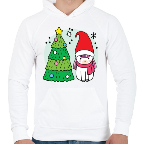1 kép PRINTFASHION Unikornis Karácsony - Férfi kapucnis pulóver - Fehér