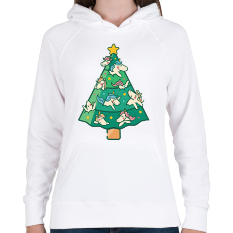 1 kép PRINTFASHION Unikornis karácsonyfa - Női kapucnis pulóver - Fehér