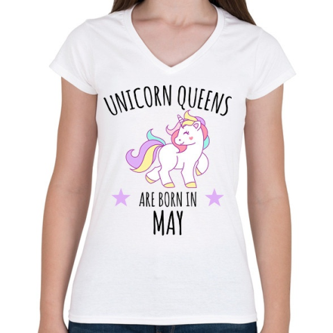 1 kép PRINTFASHION Unikornis királylányok születésnapja májusban - Női V-nyakú póló - Fehér