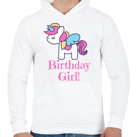 1 kép PRINTFASHION Unikornis kiscsaj születésnapja - Férfi kapucnis pulóver - Fehér