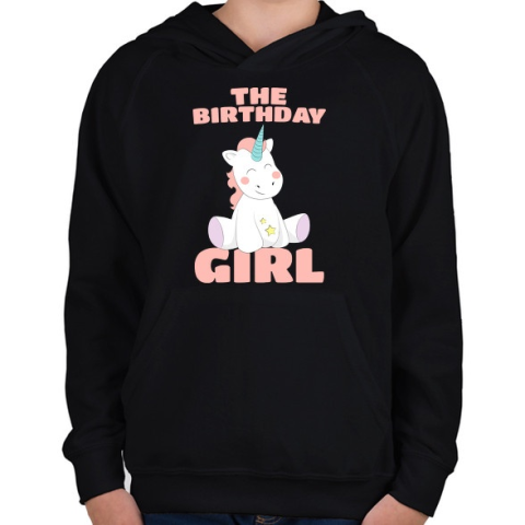1 kép PRINTFASHION Unikornis kislány születésnap - Gyerek kapucnis pulóver - Fekete