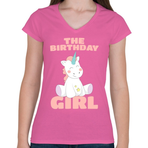 1 kép PRINTFASHION Unikornis kislány születésnap - Női V-nyakú póló - Rózsaszín
