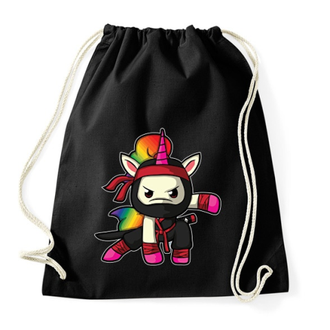 1 kép PRINTFASHION Unikornis ninja harcos - Sportzsák, Tornazsák - Fekete