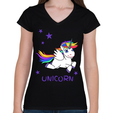 1 kép PRINTFASHION unikornis - Női V-nyakú póló - Fekete