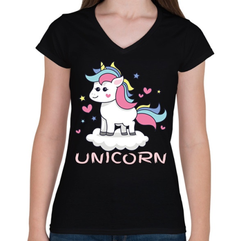 1 kép PRINTFASHION unikornis - Női V-nyakú póló - Fekete