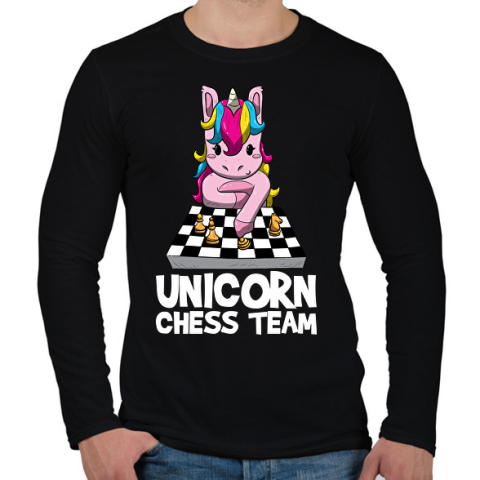 1 kép PRINTFASHION Unikornis sakk csapat - Férfi hosszú ujjú póló - Fekete