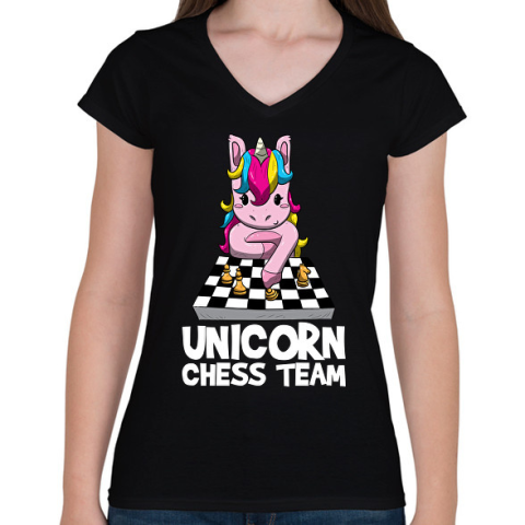 1 kép PRINTFASHION Unikornis sakk csapat - Női V-nyakú póló - Fekete