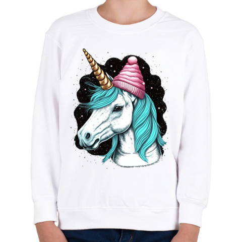 1 kép PRINTFASHION Unikornis sapkában - Gyerek pulóver - Fehér