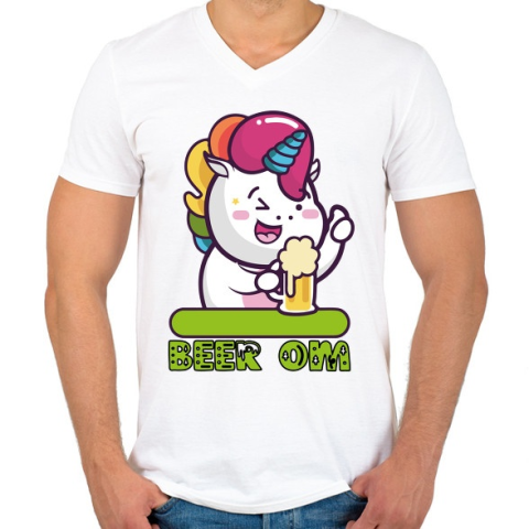 1 kép PRINTFASHION Unikornis sörrel BEER.OM - Férfi V-nyakú póló - Fehér