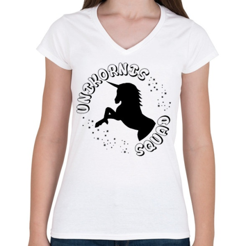 1 kép PRINTFASHION Unikornis Squad - Női V-nyakú póló - Fehér