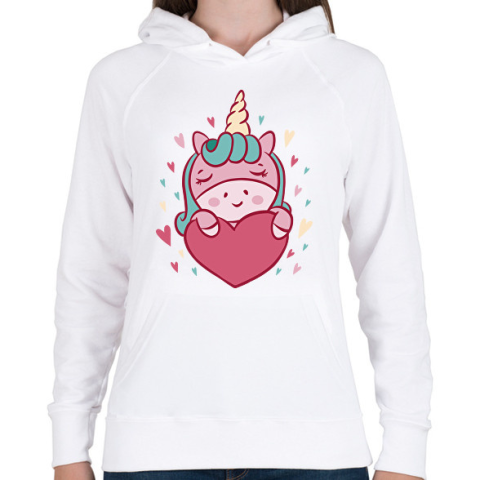 1 kép PRINTFASHION Unikornis szerelem - Női kapucnis pulóver - Fehér