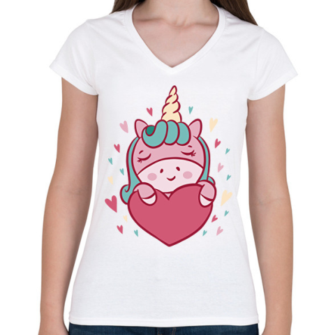 1 kép PRINTFASHION Unikornis szerelem - Női V-nyakú póló - Fehér