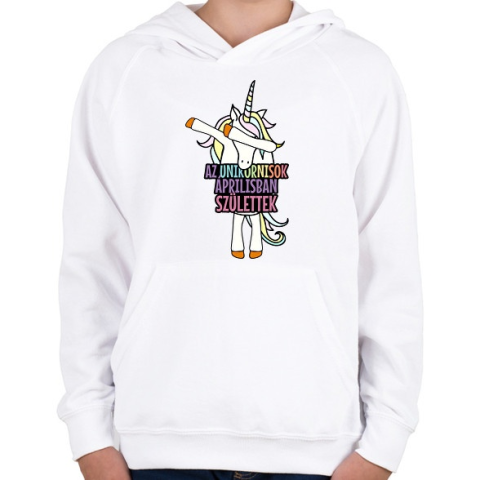 1 kép PRINTFASHION Unikornis szülinap április - Gyerek kapucnis pulóver - Fehér