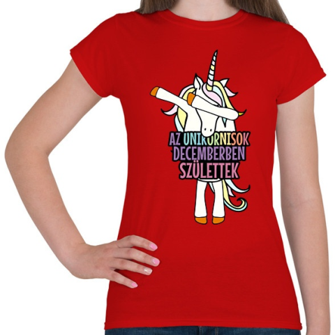 1 kép PRINTFASHION Unikornis szülinap december - Női póló - Piros