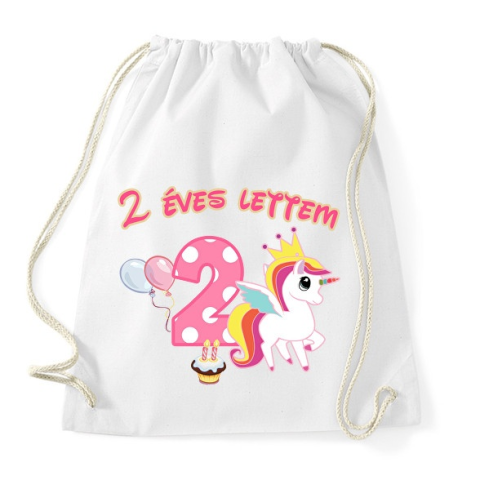1 kép PRINTFASHION Unikornis szülinap, egyedi évszámmal - Sportzsák, Tornazsák - Fehér