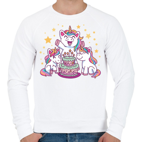 1 kép PRINTFASHION Unikornis szülinap - Férfi pulóver - Fehér