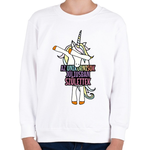 1 kép PRINTFASHION Unikornis szülinap július - Gyerek pulóver - Fehér