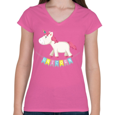 1 kép PRINTFASHION Unikornis szülinap - Női V-nyakú póló - Rózsaszín