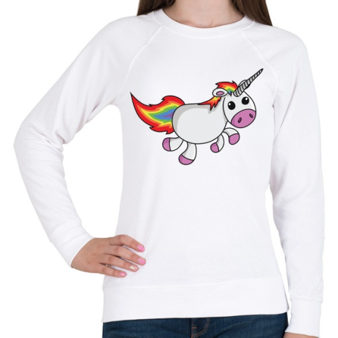 1 kép PRINTFASHION Unikornis vidáman fut - Női pulóver - Fehér