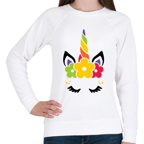 1 kép PRINTFASHION Unikornis virágokkal - Női pulóver - Fehér