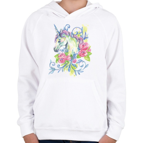 1 kép PRINTFASHION Unikornis virágokkal vízfesték - Gyerek kapucnis pulóver - Fehér