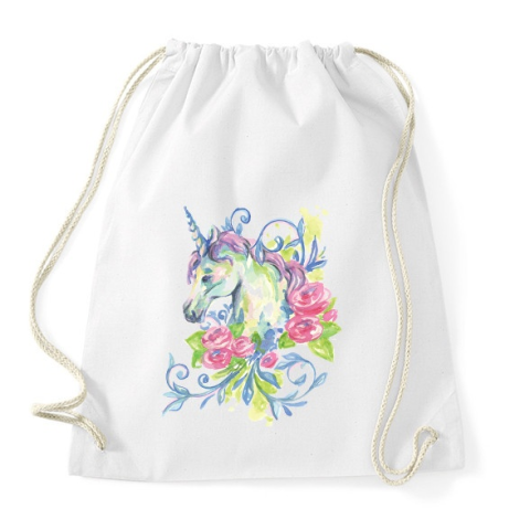 1 kép PRINTFASHION Unikornis virágokkal vízfesték - Sportzsák, Tornazsák - Fehér