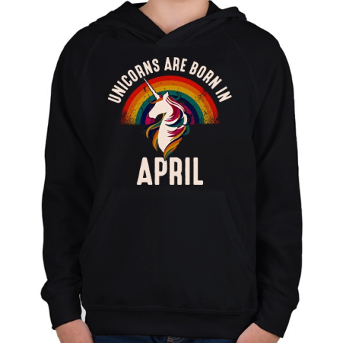 1 kép PRINTFASHION Unikornisok áprilisban születnek - Gyerek kapucnis pulóver - Fekete
