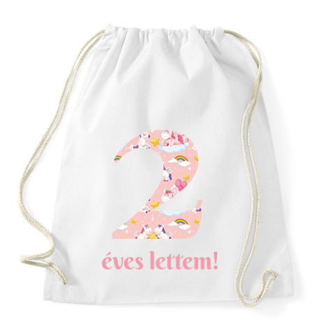 1 kép PRINTFASHION Unikornisos minta - Számmal - Sportzsák, Tornazsák - Fehér