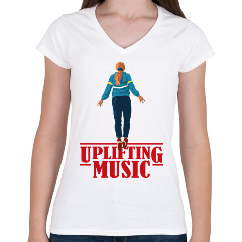 1 kép PRINTFASHION Uplifting Music Stranger Things - Női V-nyakú póló - Fehér