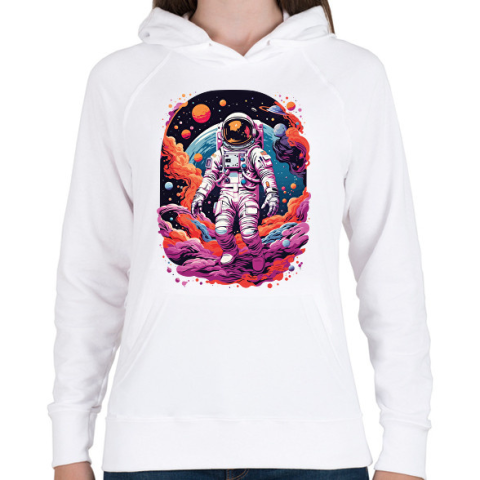 1 kép PRINTFASHION Űrhajós az űrben - Női kapucnis pulóver - Fehér