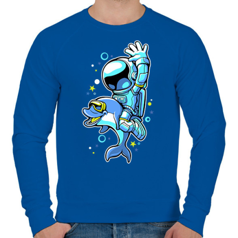 1 kép PRINTFASHION Űrhajós és a delfin - Férfi pulóver - Királykék