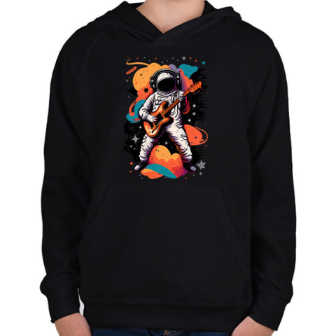 1 kép PRINTFASHION Űrhajós gitárral - Gyerek kapucnis pulóver - Fekete