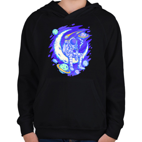 1 kép PRINTFASHION űrhajós - Gyerek kapucnis pulóver - Fekete