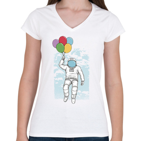 1 kép PRINTFASHION Űrhajós lufikkal - Női V-nyakú póló - Fehér