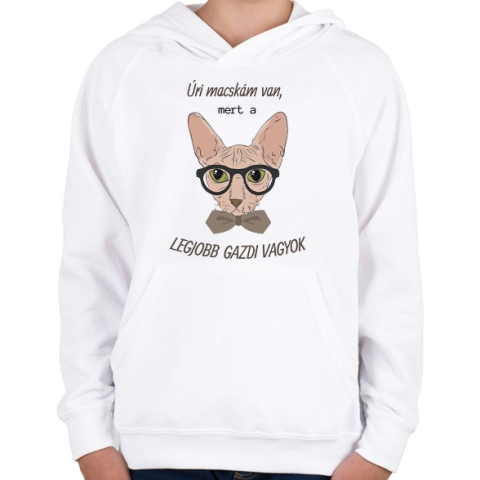 1 kép PRINTFASHION Úri macskám van 2 - Gyerek kapucnis pulóver - Fehér