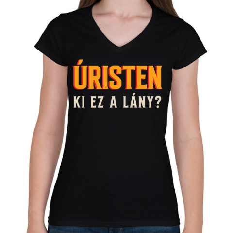 1 kép PRINTFASHION Úristen ki ez a lány - Női V-nyakú póló - Fekete