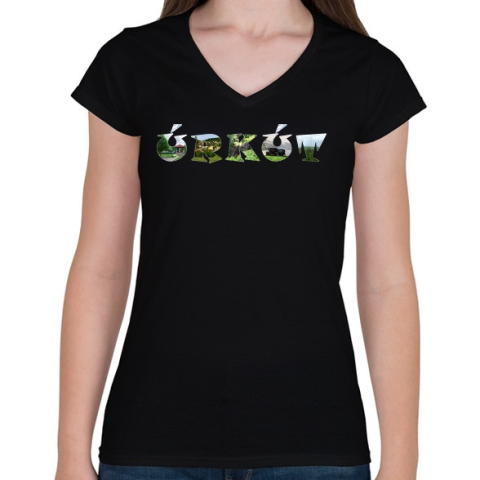 1 kép PRINTFASHION Úrkút - Női V-nyakú póló - Fekete