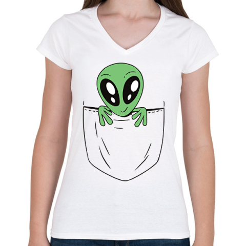 1 kép PRINTFASHION Űrlény zsebminta - Női V-nyakú póló - Fehér