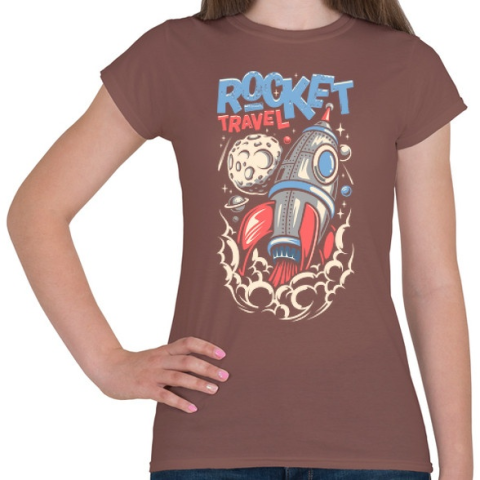 1 kép PRINTFASHION Űrutazás - Női póló - Mogyoróbarna