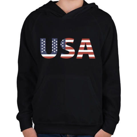 1 kép PRINTFASHION USA - Gyerek kapucnis pulóver - Fekete