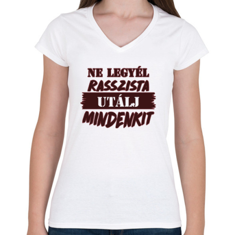 1 kép PRINTFASHION Utálj mindenkit - Női V-nyakú póló - Fehér