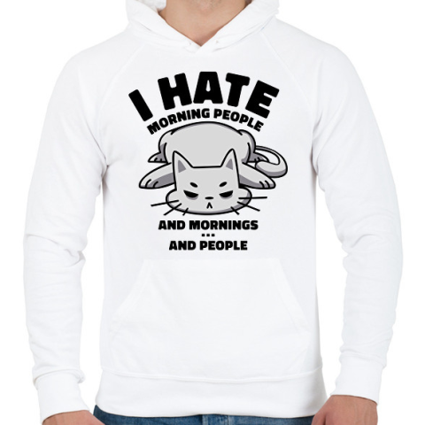 1 kép PRINTFASHION Utálom a reggeleket - Férfi kapucnis pulóver - Fehér
