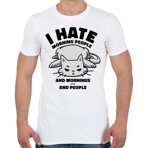 1 kép PRINTFASHION Utálom a reggeleket - Férfi póló - Fehér