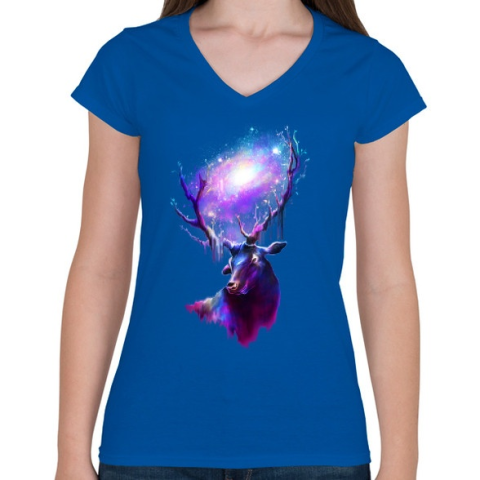 1 kép PRINTFASHION Utazó szarvas - Női V-nyakú póló - Királykék