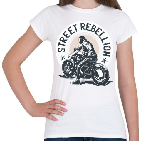 1 kép PRINTFASHION Utcai motoros - street rebellion - Női póló - Fehér