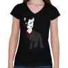 1 kép PRINTFASHION Üzlet Macska - Női V-nyakú póló - Fekete