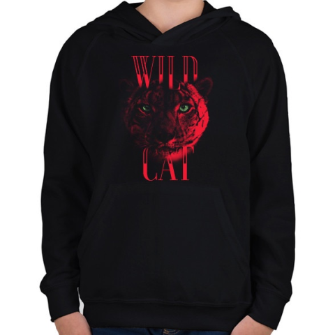 1 kép PRINTFASHION Vad macska - Gyerek kapucnis pulóver - Fekete