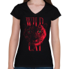 1 kép PRINTFASHION Vad macska - Női V-nyakú póló - Fekete